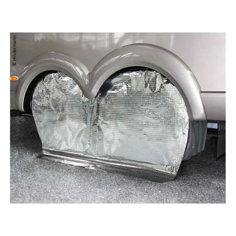 Taud, cache roue de protection isolant HINDERMANN pour pneu et roue double essieu de caravane, remorque ou camping-car.