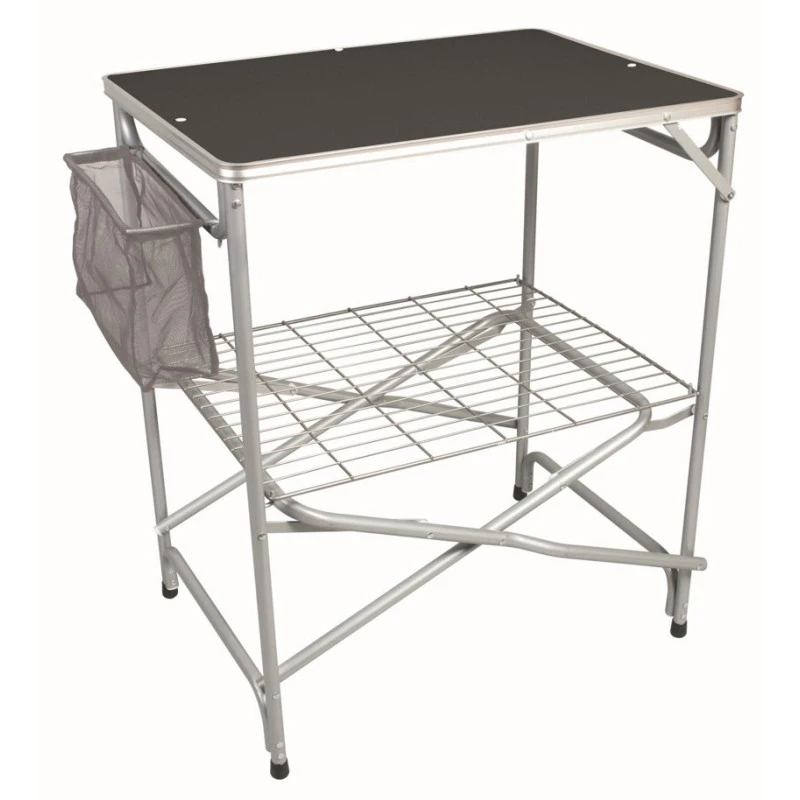 Ce mobilier de plein air destiné à un usage en extérieur est indispensable pour le rangement de votre réchaud et autres équipements de cuisine lorsque vous êtes en camping ou en caravane. Ce meuble simple à installer se compose d’une tablette rigide sur laquelle vous pourrez disposer votre réchaud ou votre barbecue. En dessous, une étagère vous servira de desserte ou de rangement selon vos besoins.