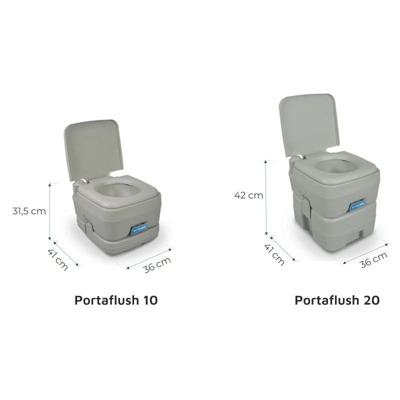 - Capacité réservoir eaux noires : 10L (Portaflush 10) et 20L (Portaflush 20)