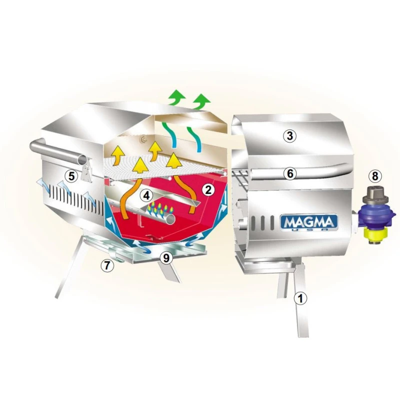 Equipement bateau et camping-car de haute qualité de fabrication, le MAGMA Chefsmate est fabriqué tout en inox, il possède un brûleur en longueur permettant une diffusion de la chaleur uniforme. Le couvercle une fois ouvert fait office de paravent efficace, une fois fermé il permet une cuisson des aliments plus rapide.