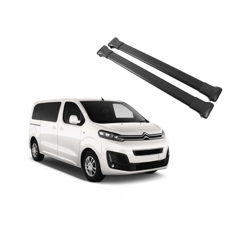 Barres de toit certifié TÜV Elegance Citrôen Jumpy/ Peugeot Expert/ Toyota Proace de 2016 à ce jours OMAC de couleur grise ou noire. Couplé aux rails de toit, cet équipement est très pratique pour transporter vos équipements volumineux à bord de votre van aménagé.