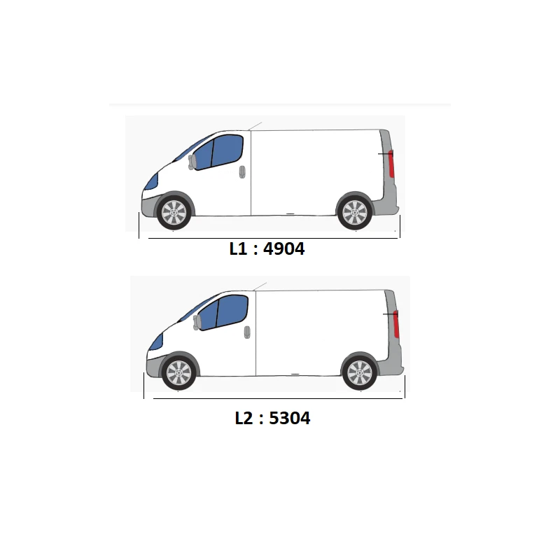 - Longueurs hors-tout : L1 4904 mm & L2 5304 mm