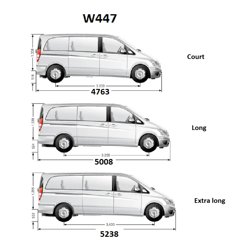Choisissez votre modèle selon la version de votre van aménagé : court, long ou extra-long.