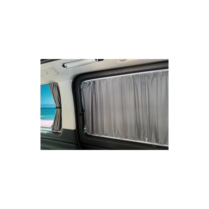 Ces occultants textiles sont fabriqués sur-mesure spécialement pour les Volkswagen T3 des années 1979 à 1990, et s’intègrent parfaitement sur les fenêtres de votre véhicule (hors habitacle). Les rideaux permettent de réguler la température intérieure en empêchant aux rayons du soleil de passer.