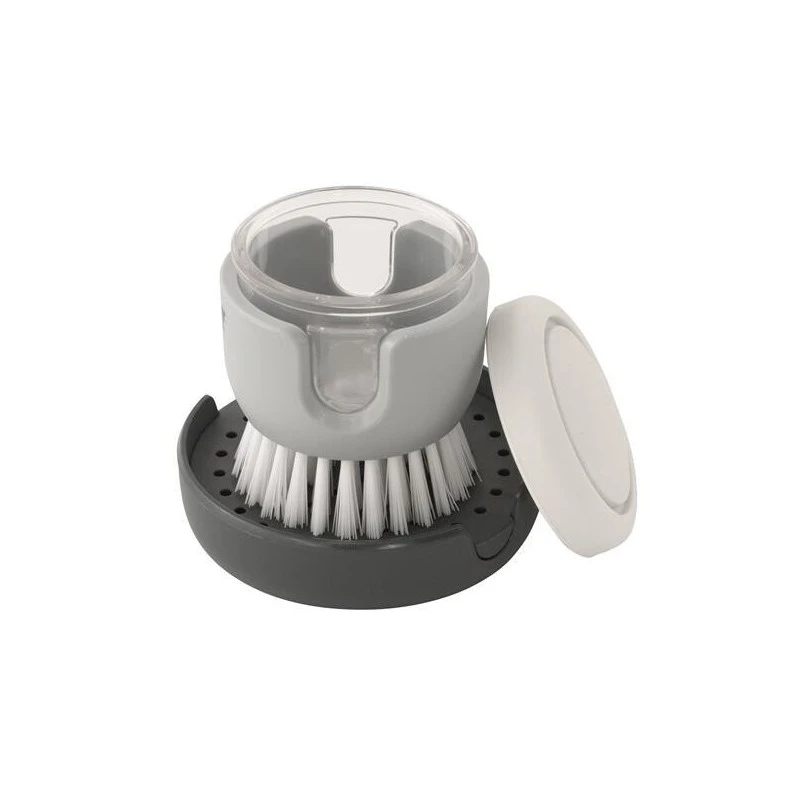 Brosse à vaisselle avec distributeur de savon incorporé pour un lavage efficace et un gain de place dans la cuisine à bord de votre camping-car.