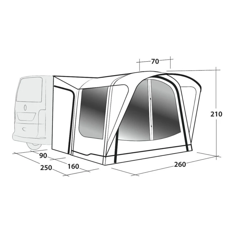 OUTWELL, le auvent latéral indépendant gonflable Newburg 160 Air est compatible pour tous les véhicules / fourgons aménagés disposant d’une hauteur entre 175-200 cm. Auvent parfais pour la mi-saisons, il offre une pièce supplémentaire pour gagner en confort.