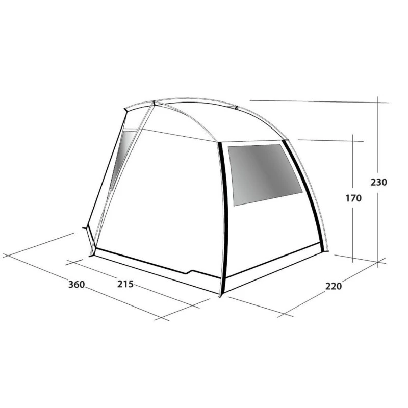 Par beau temps, cet accessoire extérieur vous protégera du soleil grâce aux rideaux et des insectes avec les moustiquaires, en cas de pluie l’auvent est fabriqué avec des coutures thermo-soudées qui sera un allié redoutable contre les infiltrations d’eau. Le auvent est disposé de la façon suivante : la porte principale se plie d’un côté, et pour plus de confort le auvent est équipé d’un passe-câble pour votre téléphone.