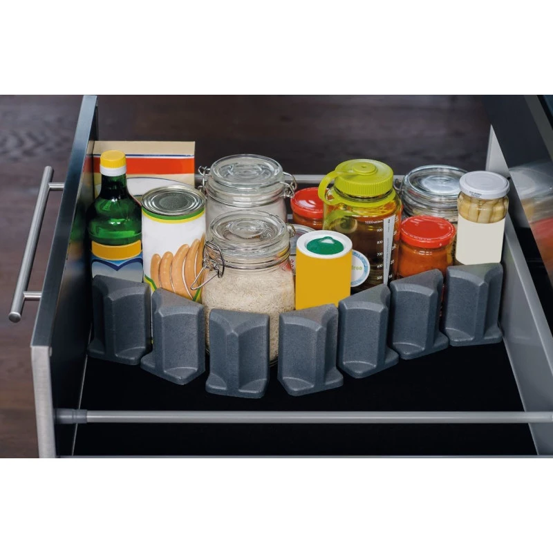 Lot de 6 supports de blocage pour le système de rangement de cuisine PUR VARIO dédié au camping-car, bateau et fourgon aménagé ; ces cales conviennent pour boîtes, flacons et récipients.