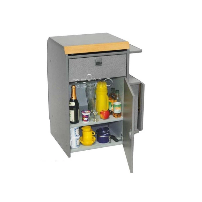 Aménagé facilement votre VW Transporteur T4 Multivan avec le meuble de cuisine tout fait REIMO, ce meuble astucieux intègre des rangements, un évier avec robinet connecté a une pompe 12V dans son jerricane 12 Litres, un autre jerricane 12L pour récupération des eaux usées ainsi qu’une très pratique tablette sur laquelle viens s’installer un réchaud gaz (non fourni).