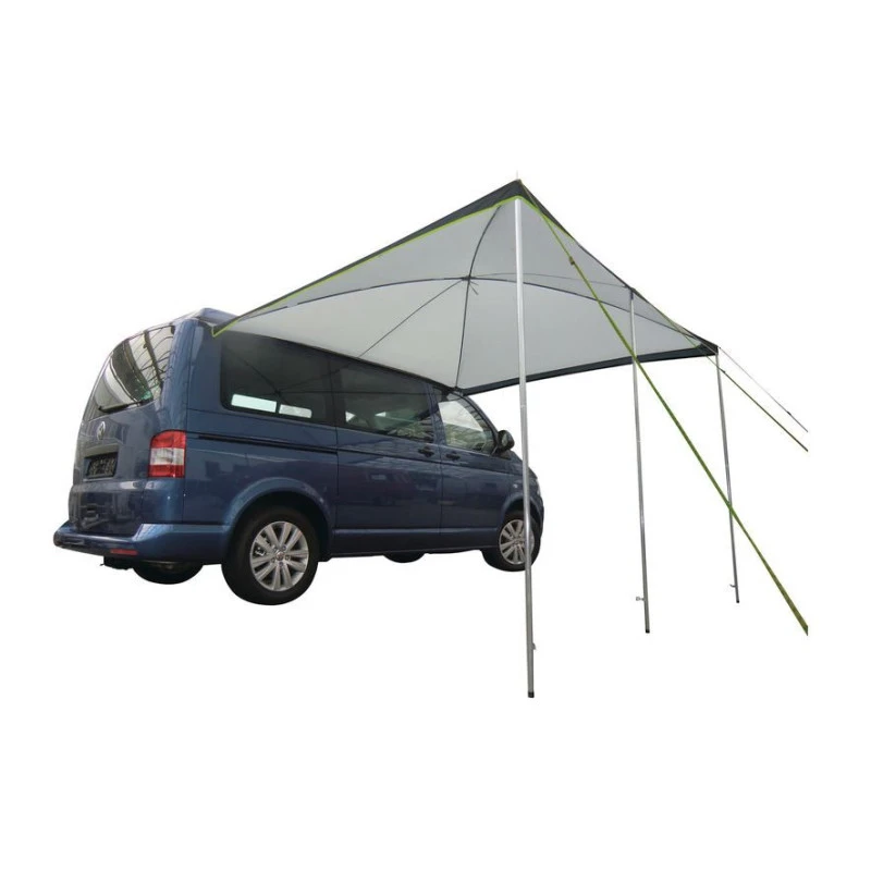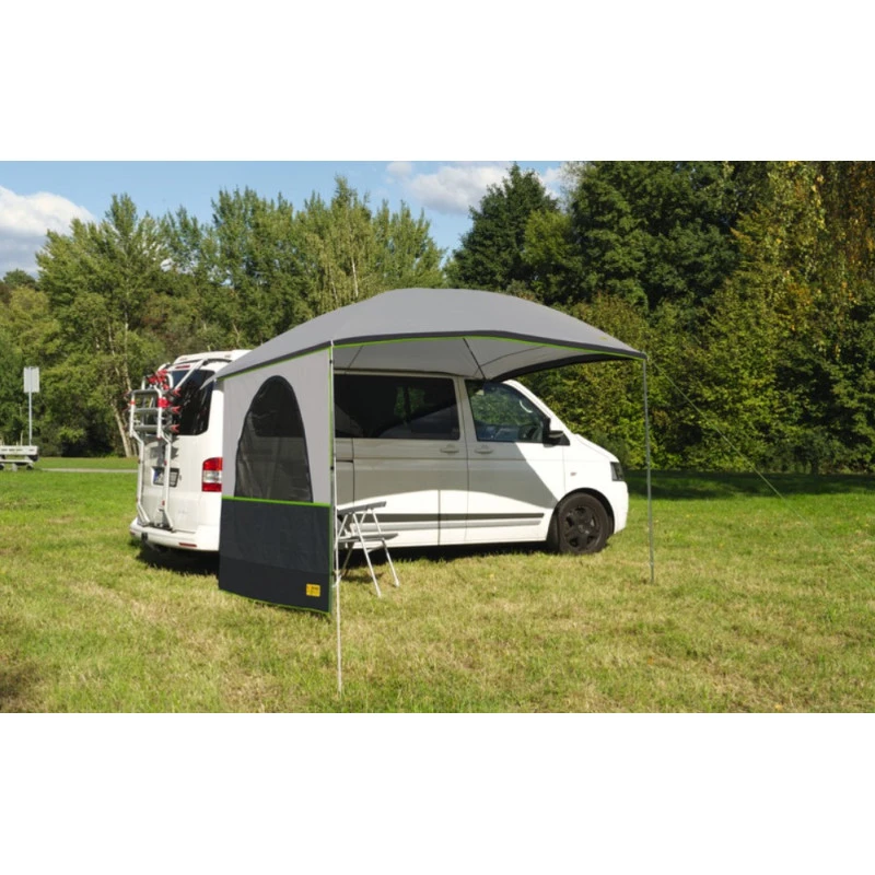 Equipement fourgon aménagé petit prix de bonne qualité le REIMO Palm Beach est un store latérale de 2,60 m ou 3 m de long pour une profondeur de 2,4 m, il est idéal pour une fixation sur petit fourgon équipé d’un rail latéral comme le VW T5, T4 et petite caravane.