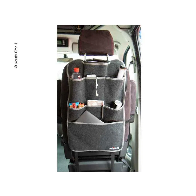 Ce modèle de rangement REIMO se met donc derrière les sièges, il comprend de nombreux compartiments et notamment un grand spécial pour ordinateur portable par exemple.