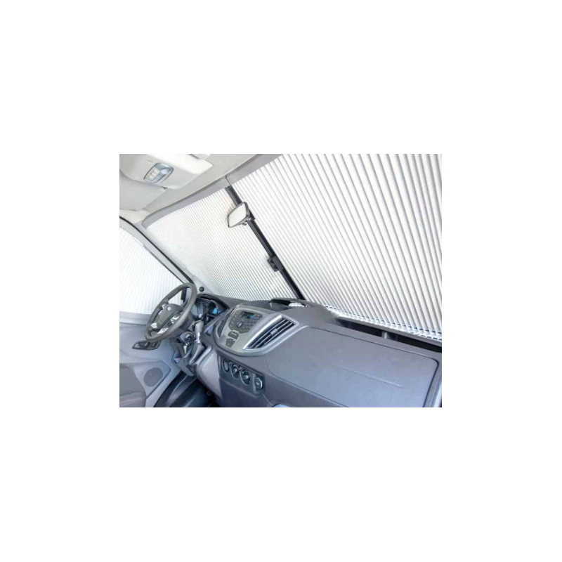 REMIS propose son store Remi Front occultant & isolant thermique pour le pare-brise & les fenêtres latérales spécialement pour les véhicules Ford Transit V363 (à partir de 2019). Facile d’installation, il se monte sur les montants du camping-car ou fourgon aménagé.