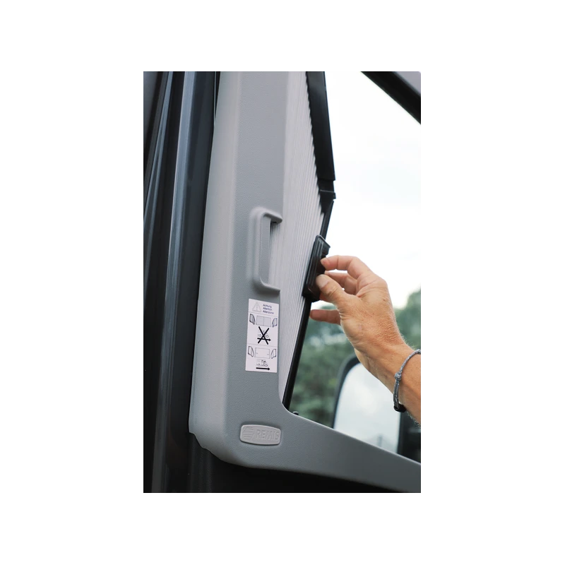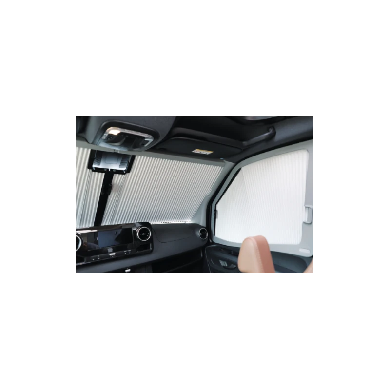 Le Remi Front IV de REMIS est un rideau occultant & isolant fixe pour pare-brise & fenêtres latérales de la cabine, spécialement conçu pour les camping-cars & fourgons aménagés Mercedes Sprinter depuis 2019.