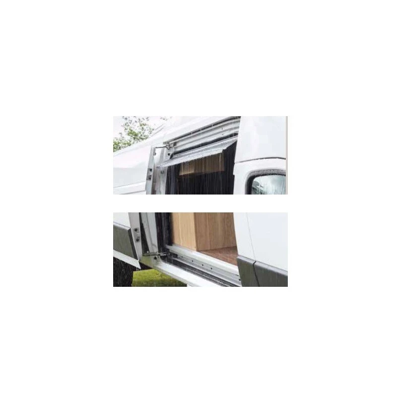 Il s’agit d’un accessoire REMIS compatible avec la moustiquaire de porte latérale REMIcare Van Fiat Ducato. Celle-ci doit être installée pour y positionner le déflecteur de pluie. Vissé sur le profil plastique de la moustiquaire, le déflecteur de pluiese ferme automatiquement et facilement grâce à ses charnières à ressort livrées avec.