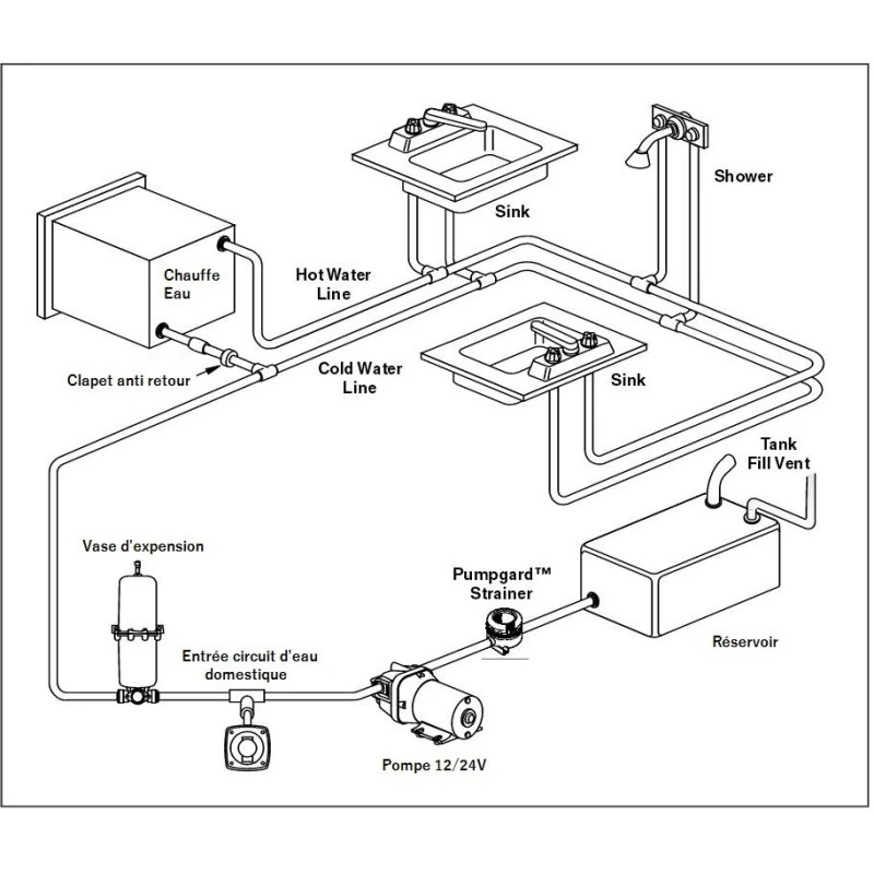 - Pour l’installation de ce modèle de pompe dans votre camping-car nous vous conseillons l’installation d’un vase d’expansion : Voir ici