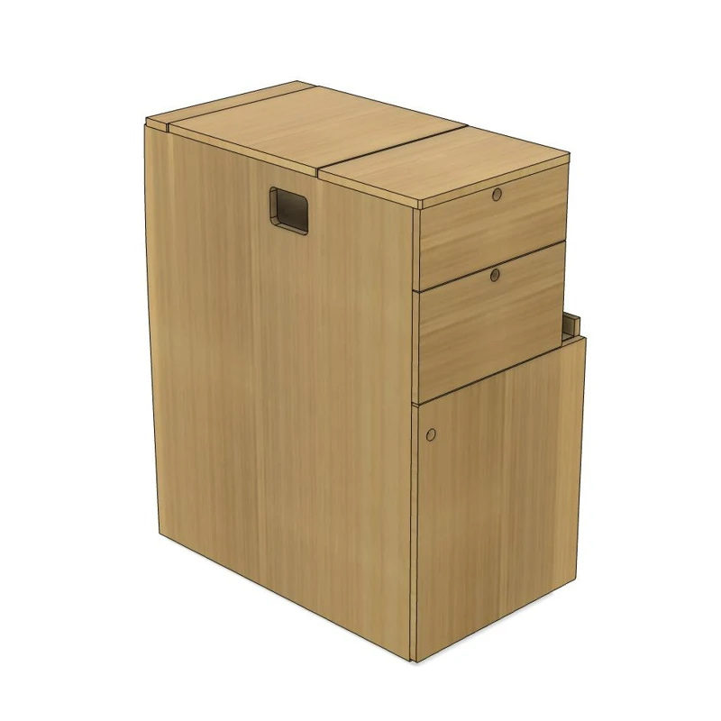 ⚠ Le meuble est prévu pour être installé sur un plancher épaisseur 12 mm. Si votre plancher est plus épais, il faudra prévoir de recouper certaines zones. Egalement certaines zones peuvent être a réajuster selon l’ajustement des placage de paroi.