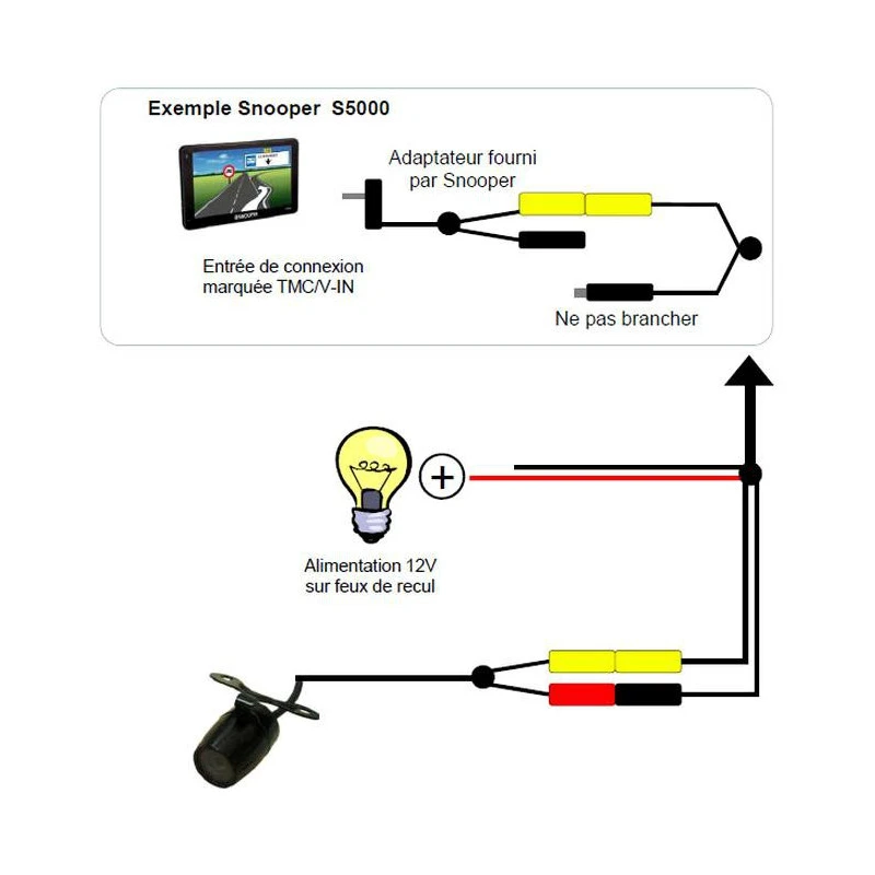 Caméra vidéo de recul filaire pour les camping-cars à connecter aux GPS SNOOPER Ventura CC5000, CC6600, CC7000 et CC9600.
