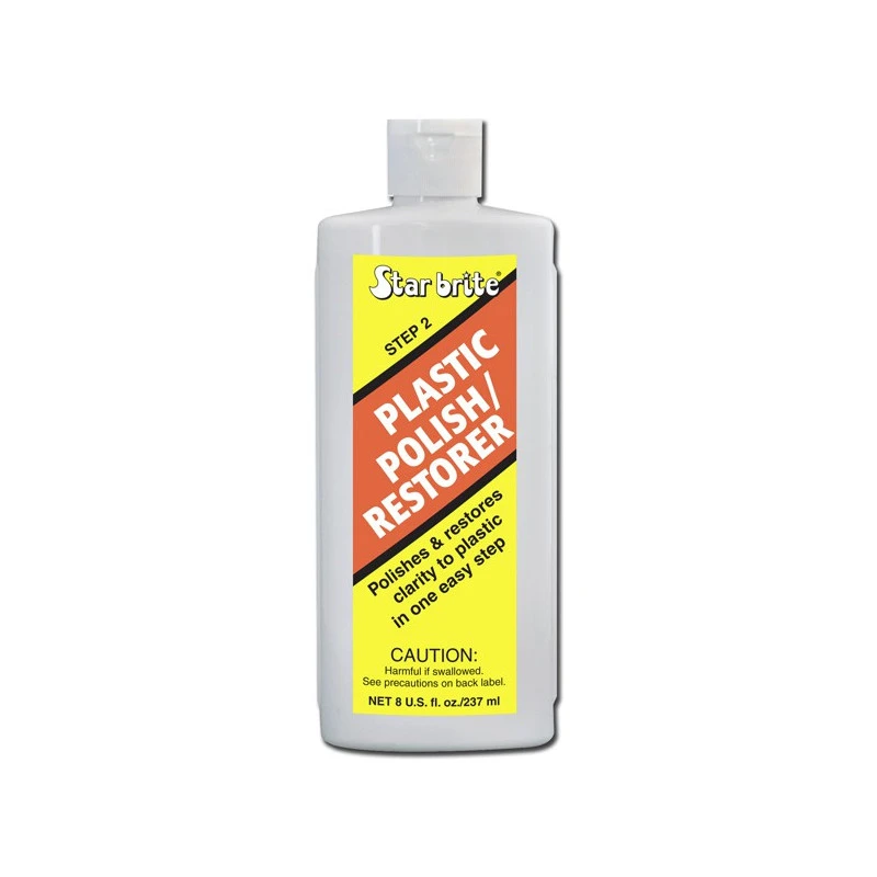 Produit à utiliser après le STAR BRITE Anti-rayures pour plastique. Redonne leur brillance et leur clarté aux surfaces acryliques et en polycarbonate, ainsi qu’à la plupart des autres types de surfaces plastiques de bateau ou de camping-car. Flacon de 0,237 L.