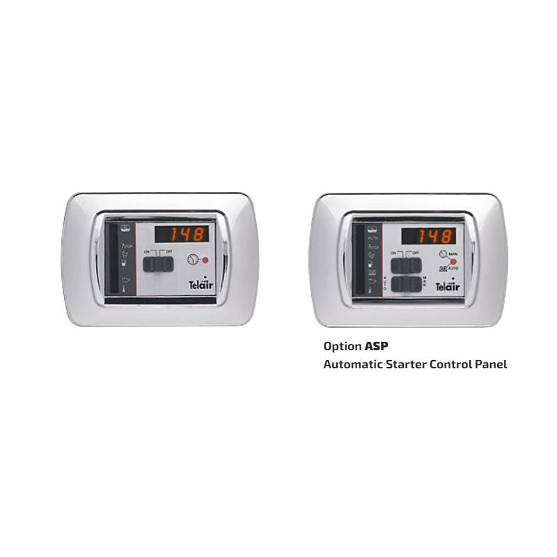 Proposé en deux modèle donc, démarrage automatique ou manuel. Dans les deux cas le démarrage se fait électroniquement grâce au panneau de contrôle fourni mais le modèle auto est livré avec un panneau ASP qui permet la mise sous tension automatique si le générateur est branché sur un chargeur de batterie (230V – 12V). Dans tous les cas, il est possible de démarrer le groupe avec un lanceur manuel intégré en cas de panne de batterie.