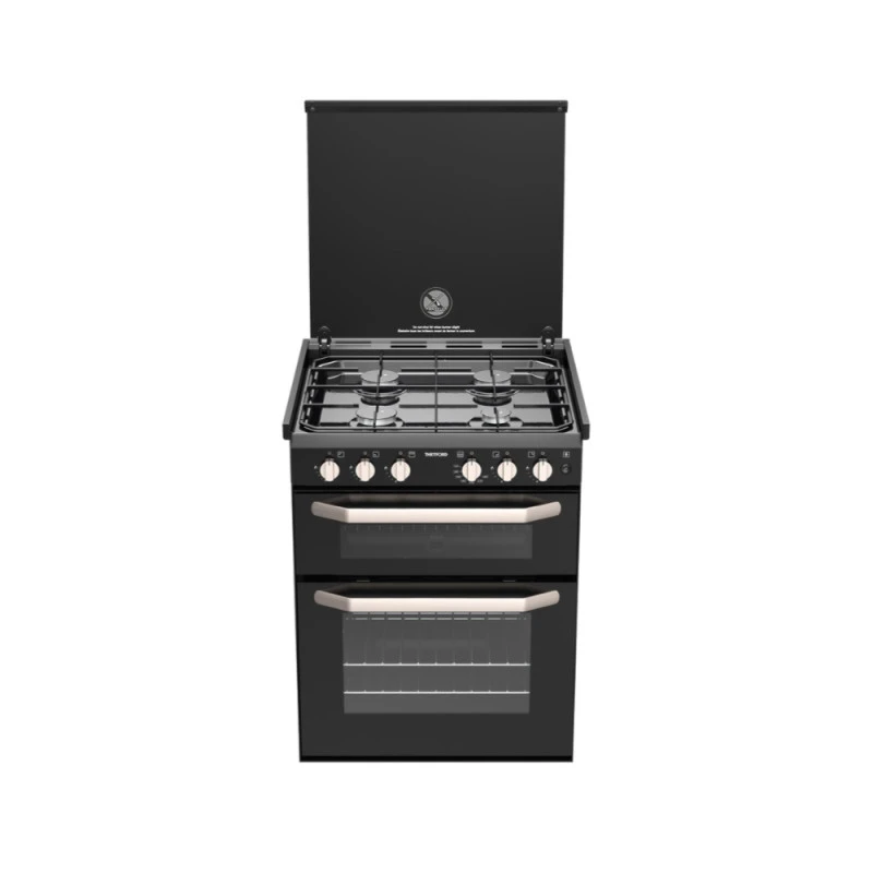 Voici la THETFORD K1520. Alimentée au butane ou propane, cette cuisinière est équipée d’une plaque de cuisson à 4 brûleurs, d’un grill de 15 L, ainsi que d’un four d’une capacité de 37 L.