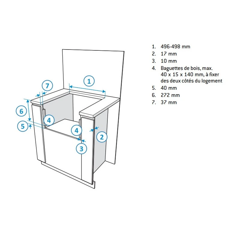 - Dimensions d’encastrement : H 312 x l 496 x P 490 mm