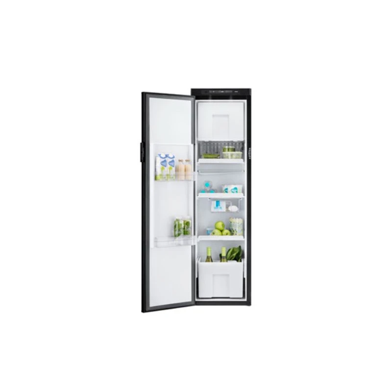 La porte est réversible et livrée en standard avec les charnières à gauche (lorsque l’on regarde le frigo en face). Bref, le parfait réfrigérateur pour un fourgon aménagé, un camping-car ou caravane.