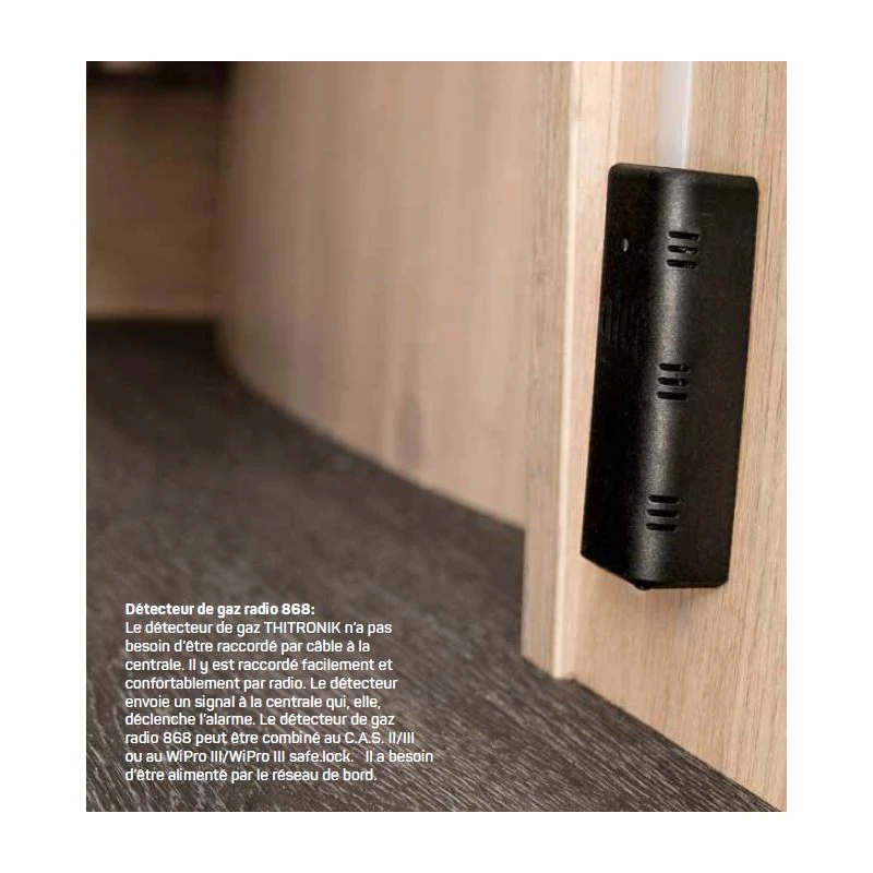 Détecteur de gaz sans fil THITRONIK sans fil radio pour les alarmes camping-cars, caravanes et fourgons aménagés WiPro III et C.A.S III. Détectes tous les narcotiques, monoxyde de carbone et butane/propane.