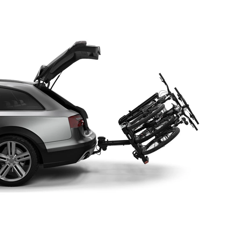Porte-vélos de la marque THULE, le modèle EasyFold XT 3 peut accueillir jusqu’à 3 vélos : VTT, électriques ou enfants. A disposer sur votre boule d’attelage à l’arrière de votre van ou fourgon aménagé, il est également entièrement pliable.