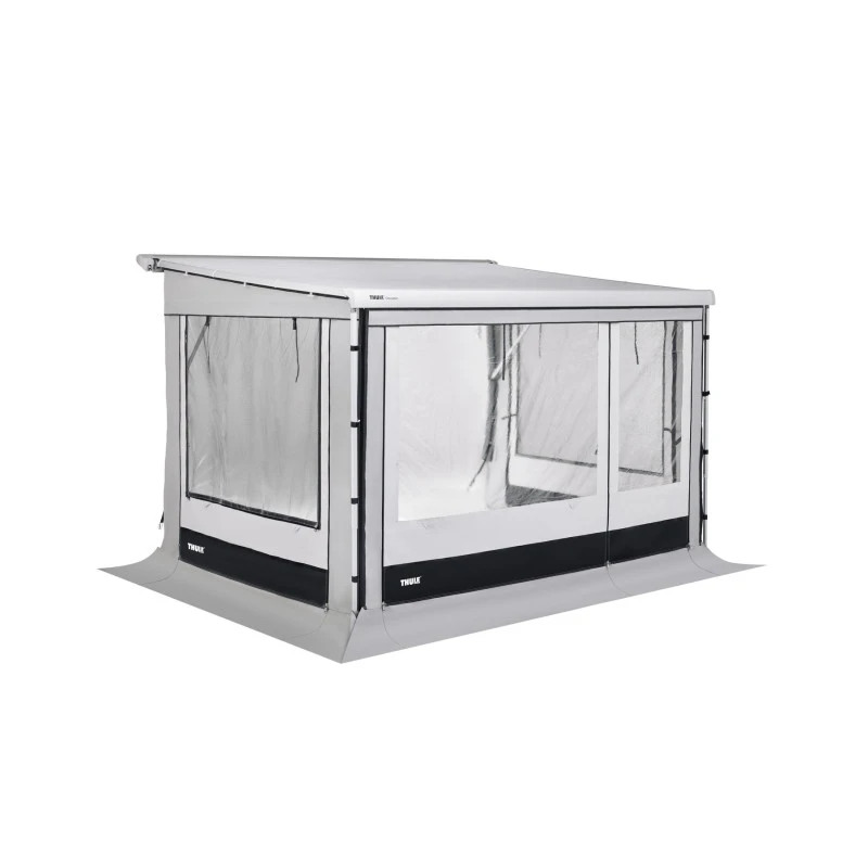 La gamme d’auvent complet de chez THULE s’agrandit et il est possible désormais d’opter pour un auvent entièrement clos pour la célèbre gamme ERIBA Touring. Vendu complet, cet auvent de caravane est doté d’une façade ainsi que de côtés permettant une fermeture totale de votre auvent extérieur. Résistant, solide, il vient se fixer directement sur votre store extérieur de toit THULE 6300.