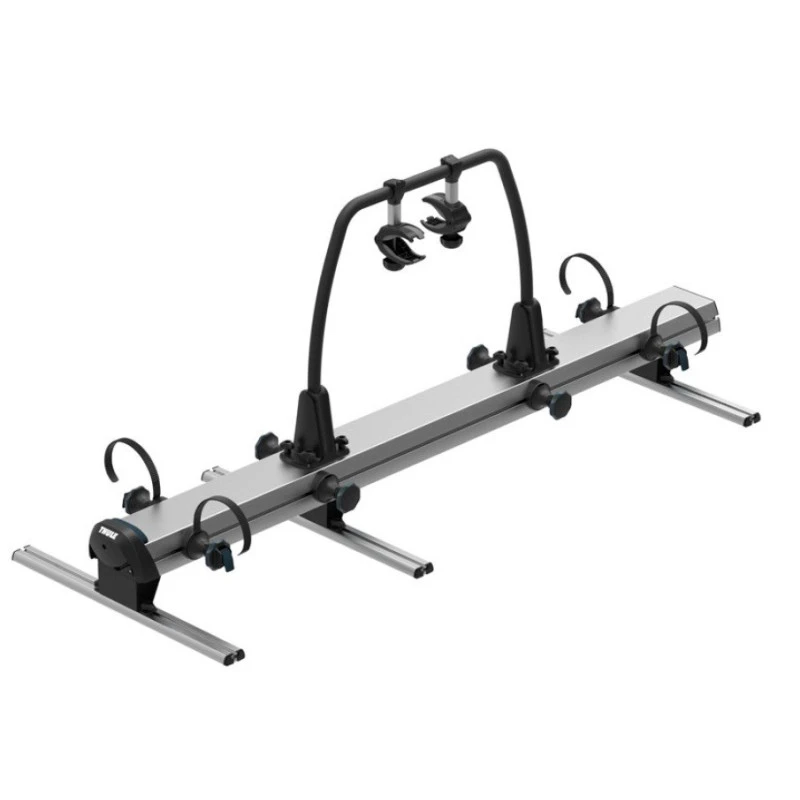 Le porte-vélos de soute est conçu pour supporter un poids de 70 kg et convient pour deux vélos même pour des vélos électriques. Sans rail pour supporter les vélos, les réglages des supports se fait rapidement et sans outils. Pour une installation complète, les coulisses sur lesquelles sont fixées le porte-vélos ne sont pas livrées en standard. THULE propose deux modèles au choix : 70 ou 140 cm.