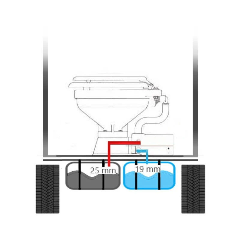 Sur Véhicule un coude anti-siphon sera lui aussi indispensable si le réservoir est situé plus haut que le WC (idem pour montage sur réservoir en bateau)
