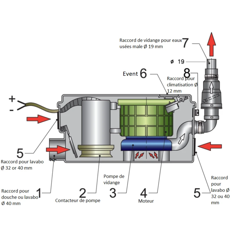 - Evacuation : Ø 19 mm