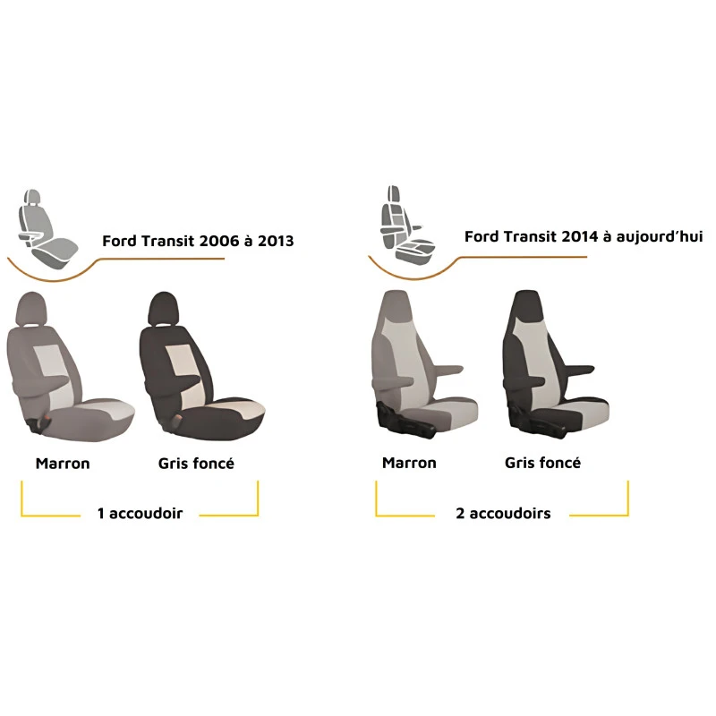 Housse de protection pour siège et fauteuil avant passager et conducteur sur fourgon aménagé et camping-car à porteur FORD Transit. La paire, plusieurs coloris.