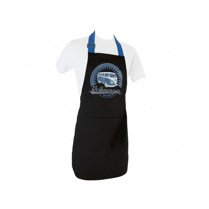 Tablier de cuisine de la marque VW COLLECTION, il est indispensable pour cuisiner comme un chef sans vous salir. Il peut également être un cadeau sympa pour vos amis qui possèdent un fourgon aménagé.