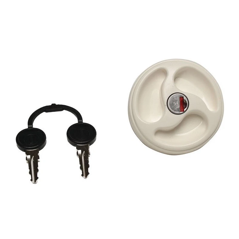 Bouchon pour les coupelles ZADI proposé en noir ou en blanc livré avec son barillet et deux clés, à installer sur les nables de carrosseries pour camping-car, fourgon, van aménagé et caravane.